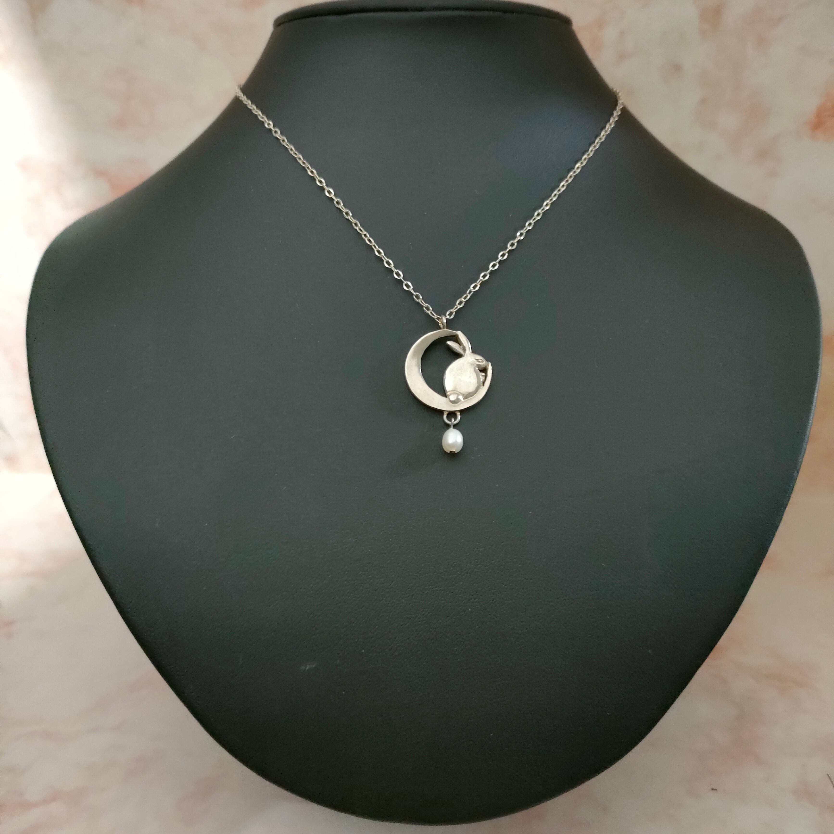 三日月に見返り兎がちょこんと座っています。かわいいよね~